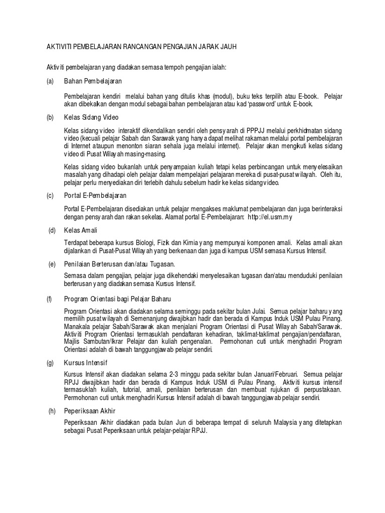Related : Pendidikan Jarak Jauh Usm - Program pengajian jarak jauh (ppjj), yang dimulakan oleh universiti sains malaysia (usm) pada tahun 1971, adalah program pembelajaran jarak jauh utama yang ditawarkan di malaysia..